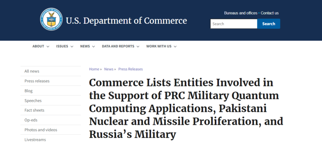 美国商务部宣称,这些实体和个人被列入的原因包括支持*军事量子计算应用,支持巴基斯坦核与导弹的扩散,以及支持俄罗斯军方。归根结底,美国商务部认定这些实力和个人的行为有可能危害美国的安全利益。