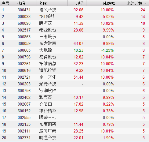 连红天数排名前20