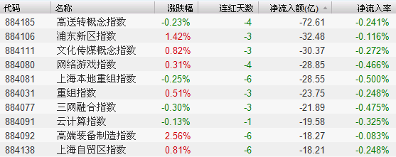 2.文化传媒概念、网络游戏和上海本地重组等板块虽然涨跌互现,但资金流出均较明显。