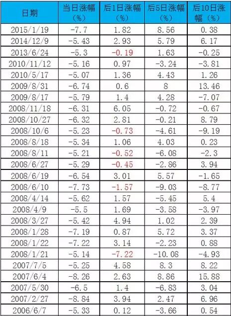 据不完全统计,自2006年以来,A股暴跌超过5%一共出现27次,暴跌超过6%出现12次,其中次日反弹几率超高达75%,平均反弹幅度超过2%。值得一提的是,在牛市周期内,A股暴跌次日反弹几率高达100%。