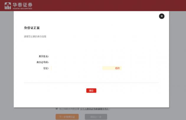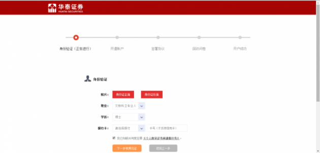 6,营业部信息选择完成之后,到了上传身份证的页面。如果你觉得你想修改前面的信息,你可以点击”返回上一步“
