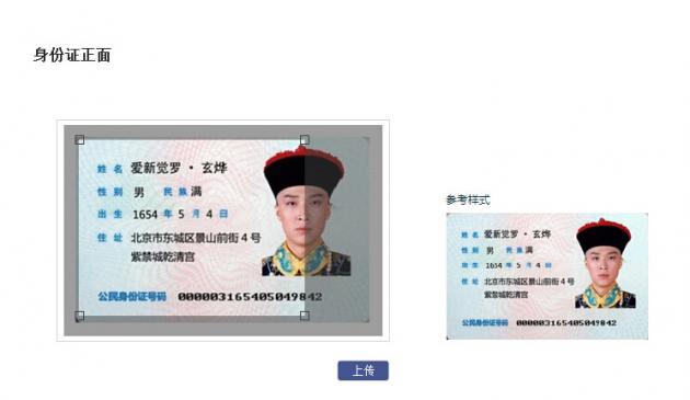 7、点击“身份证上传” 选择你要上传的身份证照片