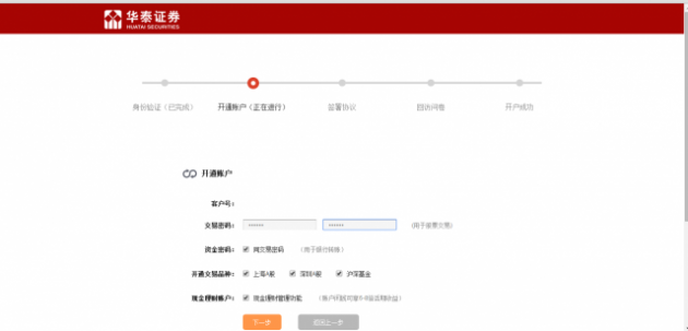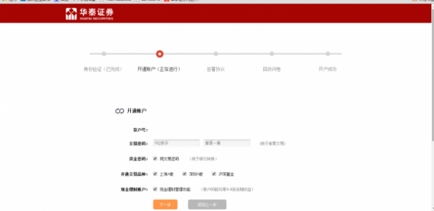 15、下面两个图是开通账户的过程,填写完成之后,点击“下一步”,如果你觉得你想修改前面的信息,你可以点击“返回上一步”