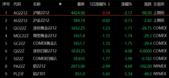本周海外股市普遍回落。美股三大指数齐跌,道指周跌幅达4.00%;标普500指数跌幅达4.65%;纳指周跌幅达5.07%。欧洲方面,三大股指周线回落,英国富时100指数周跌3.01%,德国DAX30指数周跌3.59%,法国CAC40指数周跌4.84%。亚太股市,日经225指数周跌1.50%;韩国KOSPI指数周跌3.89%。