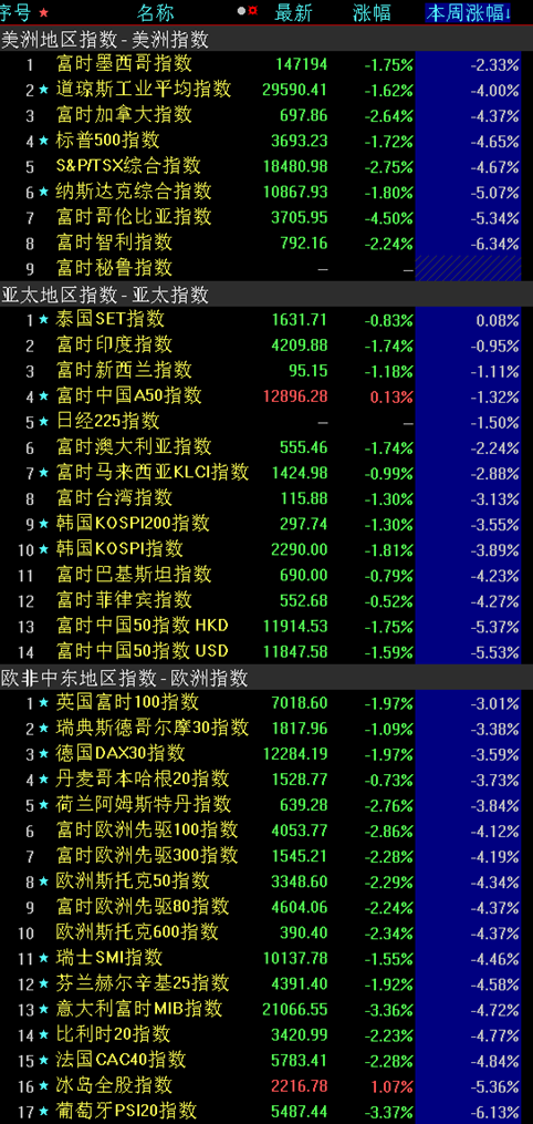 本周全球主要股指普遍大跌下周94只A股解禁机构:左侧信号已经初步显现