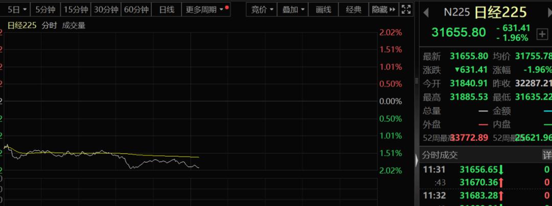 今天大跌的还有日本股市,日经指数上午狂跌近2%。不得不说,核污水排海事件对其有较大影响。昨晚,虽然美股也出现了跳水行情,但今天早上,韩国股市、中国股市都未出现大跌,日本股市的相对跌幅可以说比较大。