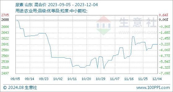 12月4日,生意社尿素基准价为2601.67元/吨,与本月初(2586.67元/吨)相比,上涨了0.58%。