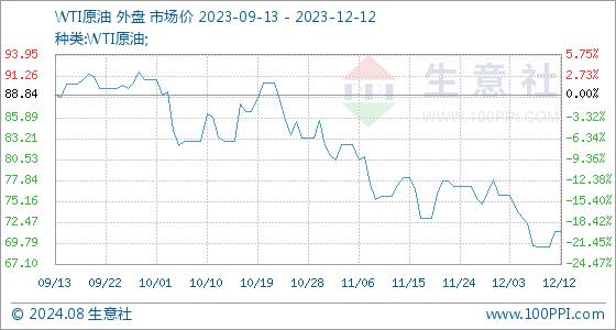 12月12日生意社WTI原油基准价为71.23美元/桶