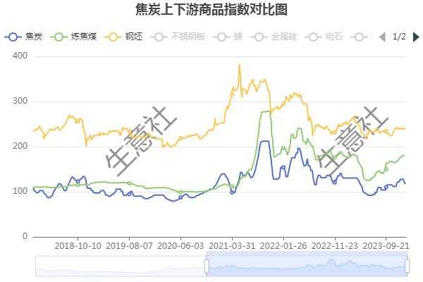 进入9月后焦煤市场率先回暖,焦企心态受到提振,同时期在下游成材市场“金九银十”的旺季提振下连续多轮提涨,至10月末成材市场表现不佳叠加原料焦煤价格回落,焦炭市场短暂回落了一轮。11月中随着焦煤市场再次走高以及下游钢厂积极入市补库,焦炭市场继续连涨三轮。