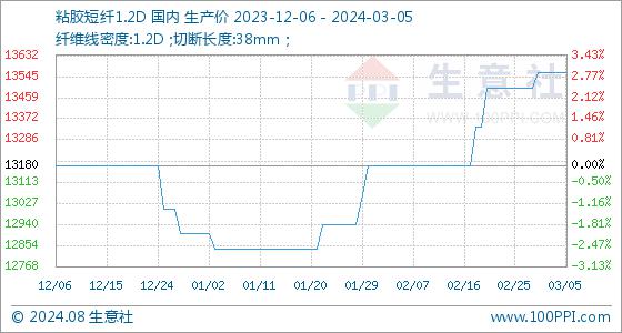 3月5日生意社粘胶短纤1.2D基准价为13560.00元/吨
