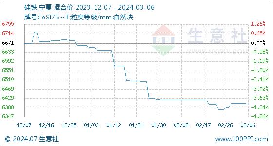 3月6日,生意社硅铁基准价为6407.14元/吨,与本月初持平。