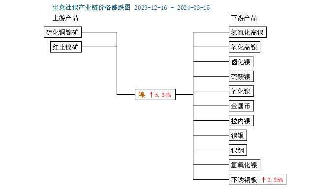 据生意社周度涨跌图显示,近12周,镍价4跌7涨,近期镍价小幅上涨。