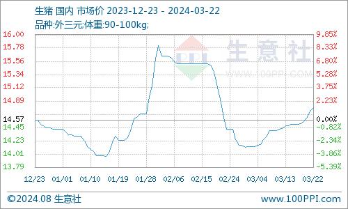 进入3月中旬,国内生猪市场供需博弈不断加剧,猪价持续弱势诱发养殖主体惜售挺价心态趋强,国内生猪市场供应整体偏紧,屠宰企业收购难度持续增加,提价补库支撑下,国内生猪市场价格持续偏强运行。