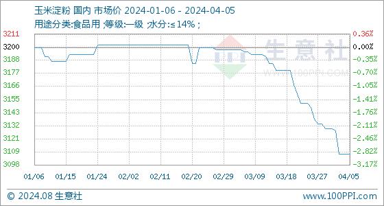 4月5日生意社玉米淀粉基准价为3108.00元/吨