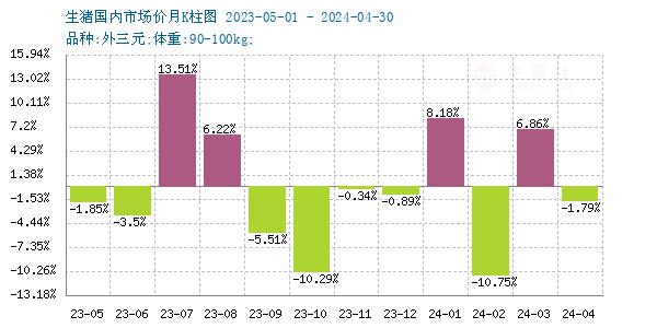 4月中旬开始,受终端肉类市场需求持续低迷压制,屠宰企业完成收购任务后启动压价收购,国内生猪市场价格整体震荡偏弱运行。
