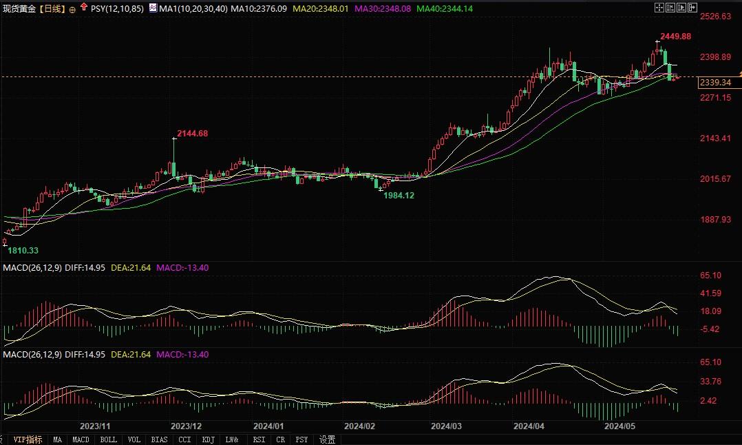 北京时间5月27日9:40,现货黄金报2340.04美元/盎司