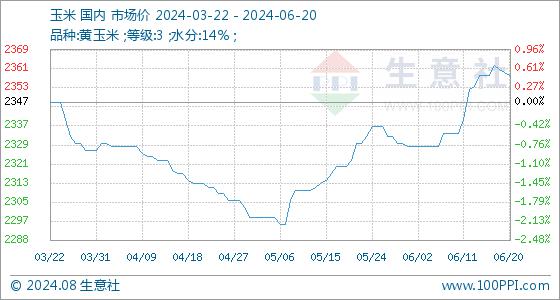 6月20日,生意社玉米基准价为2360.00元/吨,与本月初(2328.57元/吨)相比,上涨了1.35%。