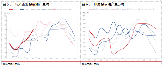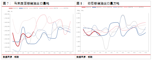 印尼方面,2024年至今是历史最高产量,但是三月之后的同比增幅在走低,80万吨增产预期可能难以实现,同时天气因素对于三季度印尼棕榈油产量的影响犹未可知。