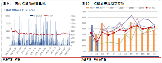 库存上,mysteel数据截至2024年6月28日,全国重点地区棕榈油商业库存42.76万吨,较前一周增3.5万吨,连续三周出现累库。