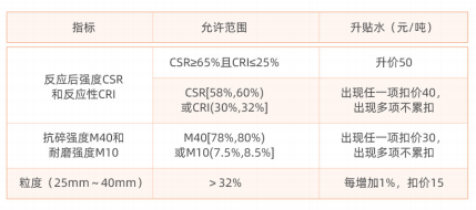 4.3焦炭采用干基计价,水分是扣重指标。实物交收时,实测水分按四舍五入至小数点后一位扣重(例如,实测水分为6.32%, 扣重6.3%) 。