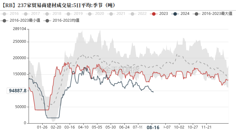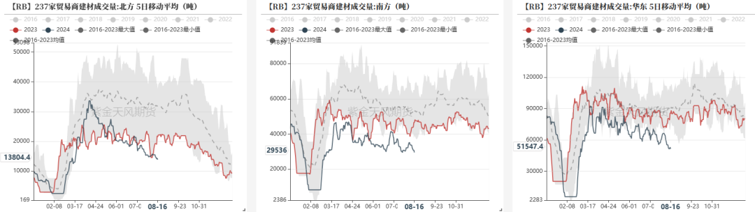 分地区来看,截至8月16日,华东地区建材成交量为5.15万吨;华北地区为1.38万吨;华南地区为2.95万吨。