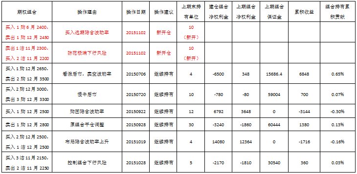 信·期权策略操作建议:新开仓【买入1购6月2400,卖出1购12月2450】、【卖出1沽11月2300,买入2沽11月2200】;继续持有【买入3沽11月2150,卖出2沽11月2250】、【买入2购12月2500,买入1沽12月2500】、【卖出1购12月2800】、【买入1购12月2500】、【买入2购12月3000,卖出3购12月3300】、【买入1购12月2650,卖出2购12月3500】。