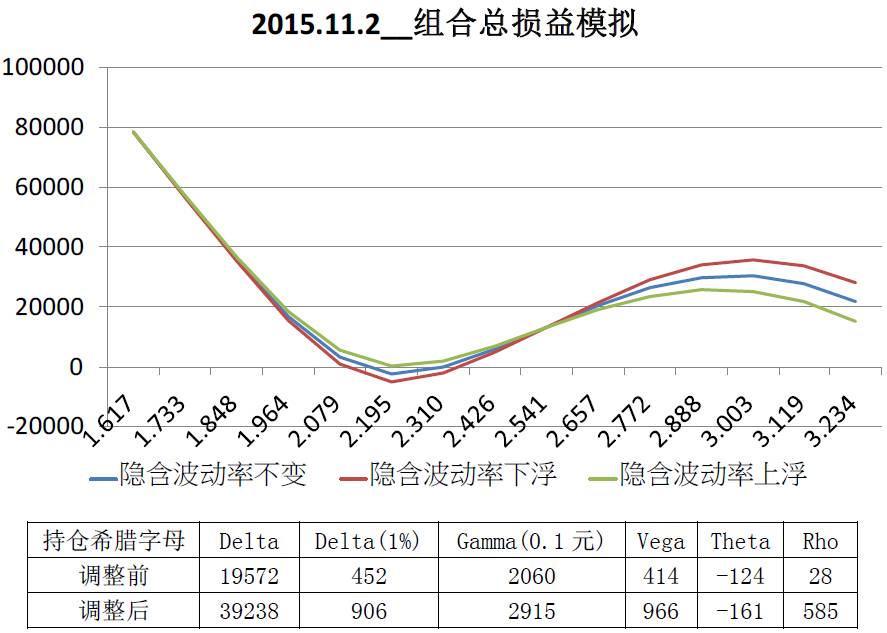 本周50ETF下跌1.70%,期权合约隐含波动率与上周基本一致,信·期权组合净值下跌0.49%。50ETF本周一高开后,保持小幅下跌走势,最终高开低走,全周下跌1.70%。目前50ETF10天实际波动率创12个月新低,达到12.25%左右,在此情况下期权20天加权平均隐含波动率继续维持在30%附近,与上周基本一致。由于期初组合Delta为正,导致组合承担了一定的方向性亏损;本周组合中持有的10月合约均在周三无价值到期,损失较多时间价值。最终,组合全周净值下跌0.49%。(注:2015.10.25发布的信期权策略中,第一段第一、三行中所写“50ETF上涨2%”有误,实际应为“50ETF上涨1.2%”,特此更正)