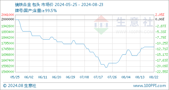8月23日生意社镝铁合金基准价为1765000.00元/吨