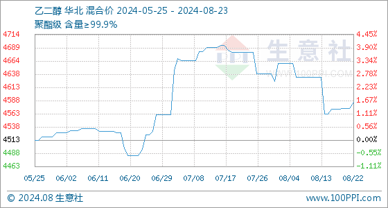 8月23日生意社乙二醇基准价为4585.00元/吨