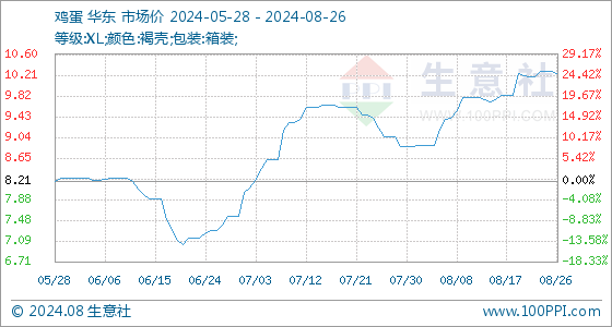 8月26日生意社鸡蛋基准价为10.28元/公斤