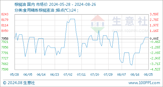 8月26日生意社棕榈油基准价为7976.00元/吨