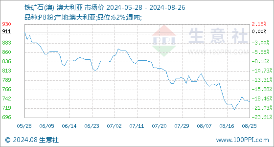 8月26日生意社铁矿石(澳)基准价为735.89元/吨
