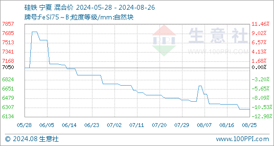 8月26日生意社硅铁基准价为6278.57元/吨