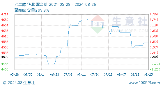 8月26日生意社乙二醇基准价为4585.00元/吨