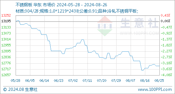 8月26日生意社不锈钢板基准价为12750.00元/吨