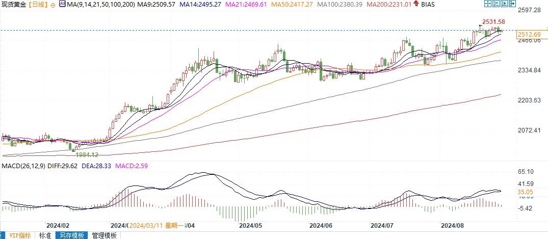 北京时间8月29日9:50,现货黄金报2513.28美元/盎司