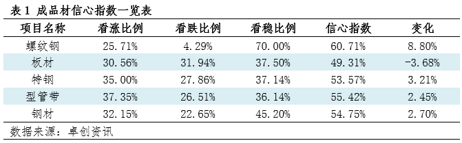 【卓创资讯钢材信心指数】