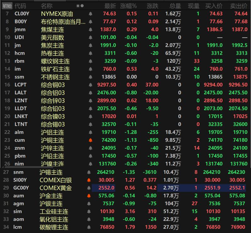 碳酸锂主连涨1.79%,工业硅主连涨3.16%。欧线集运跌2.16%。