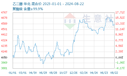 8月29日煤制乙二醇价格基本持稳,国内价格区间在4200-4330元/吨,含税出厂。