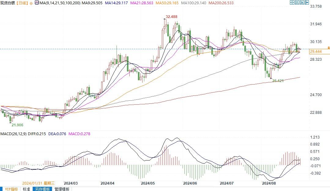 白银在强劲回调后反弹。黄/银比下跌至85.50,为白银市场提供了额外的支撑。从技术面来看,银价需要稳定在30美元以上,才能获得持续的上行动力。