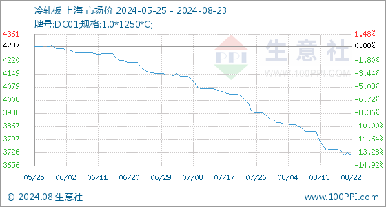 8月23日生意社冷轧板基准价为3715.00元/吨