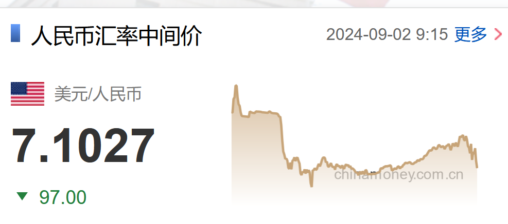 北京时间9月2日,在岸人民币和离岸人民币对美元汇率双双回落,目前均跌破7.1关口。
