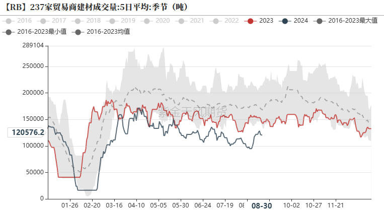 分地区来看,截至8月30日,华东地区建材成交量为6.11万吨;华北地区为2.34万吨;华南地区为3.6万吨。