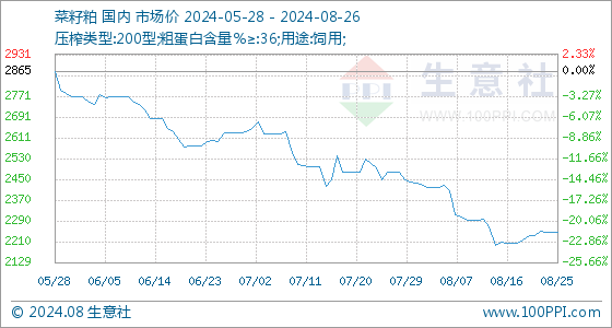 8月26日生意社菜籽粕基准价为2245.00元/吨