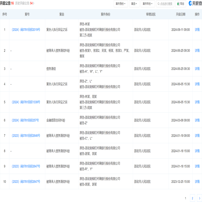 据天眼查法律诉讼信息显示,邵武刺桐红村镇银行股份有限公司(以下简称“邵武刺桐红村镇银行”)因案外人执行异议之诉被告,于2024年9月11日在邵武市人民法院开庭审理【案号:(2024)闽0781民初2019号】。