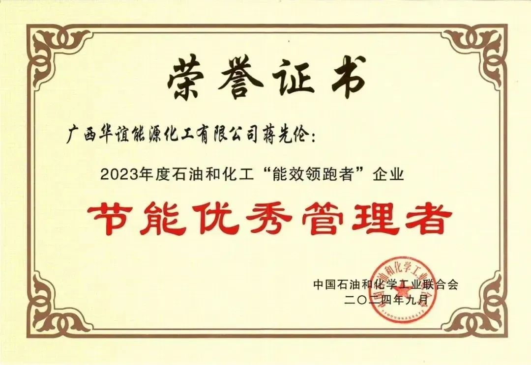 喜报!广西华谊能源化工有限公司荣获2023年全国石油和化工行业能效“领跑者”标杆企业荣誉称号