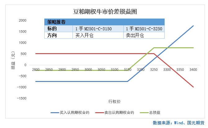 图表3 豆粕牛市价差策略损益图