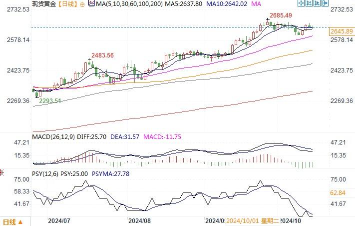 北京时间10月15日11:35现货黄金报2646.89美元/盎司