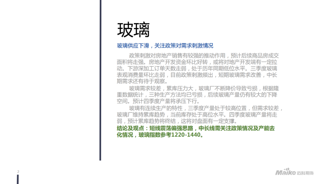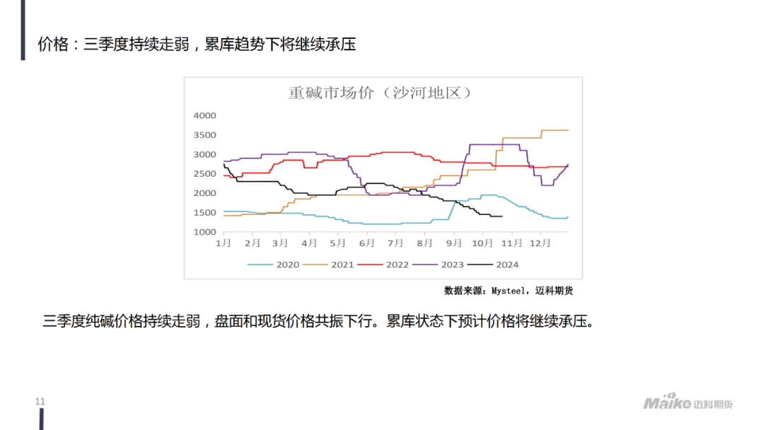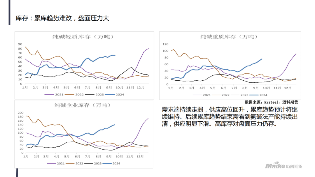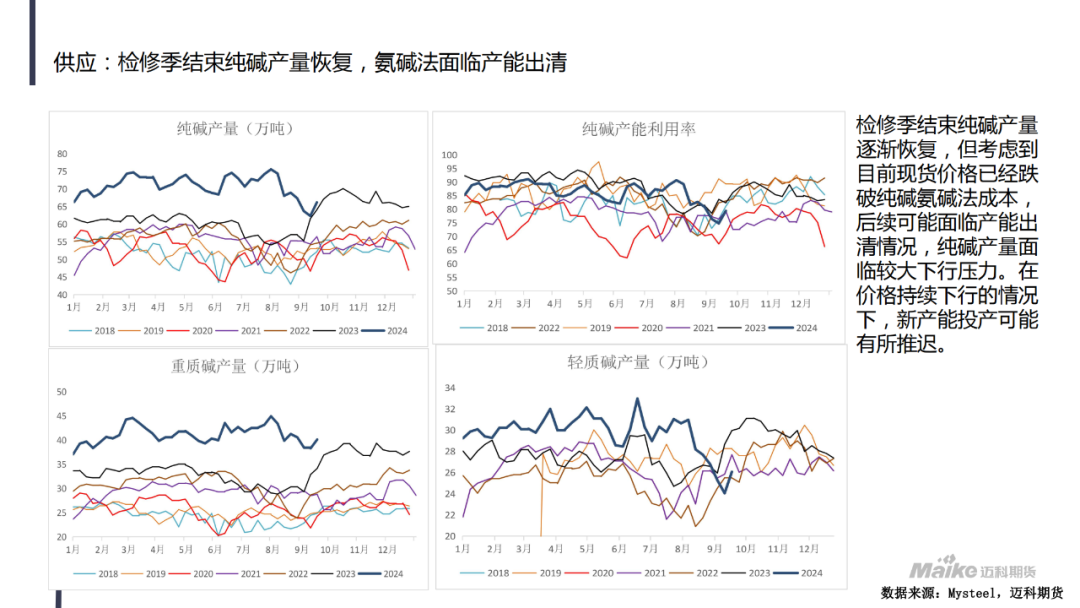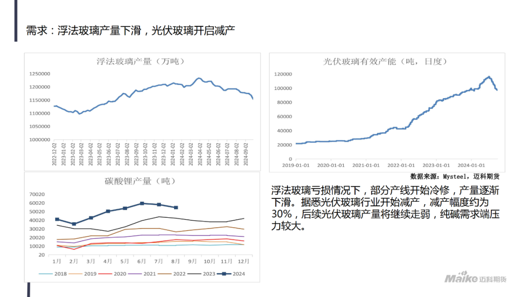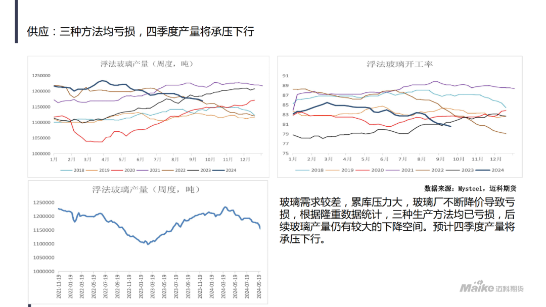 【迈科玻璃纯碱四季报】玻璃供应下滑关注政策刺激情况,纯碱累库趋势难改