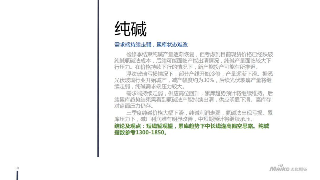 【迈科玻璃纯碱月报】玻璃持续去库纯碱开始减产,关注政策影响